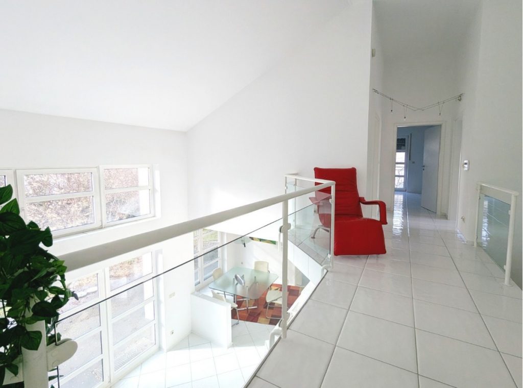Im Obergeschoss öffnet sich eine Galerie mit Blick in den Wohnbereich. Vier Zimmer, zwei Ankleidezimmer sowie zwei Bäder bieten großzügige Entfaltungsmöglichkeiten.