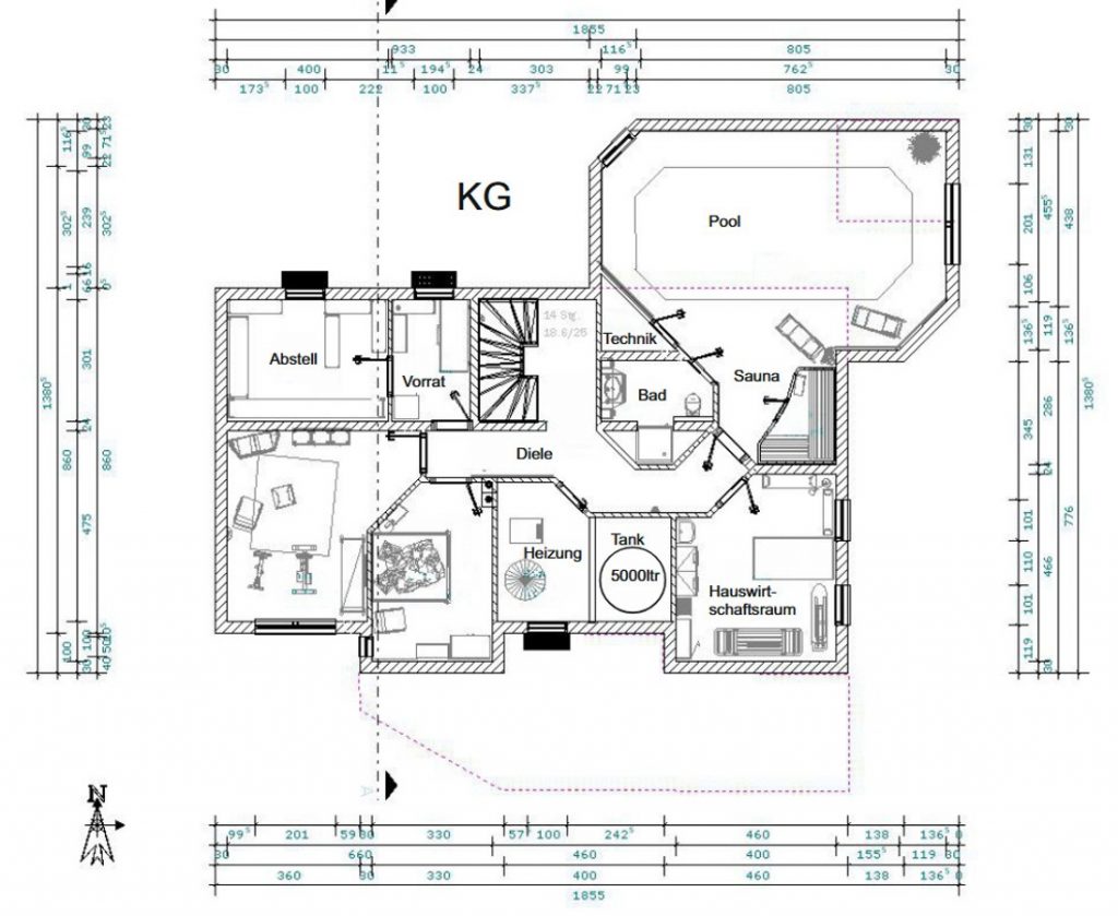 – Fußbodenheizung im gesamten Haus (auch im gesamten Untergeschoss, außer in den Technikräumen)