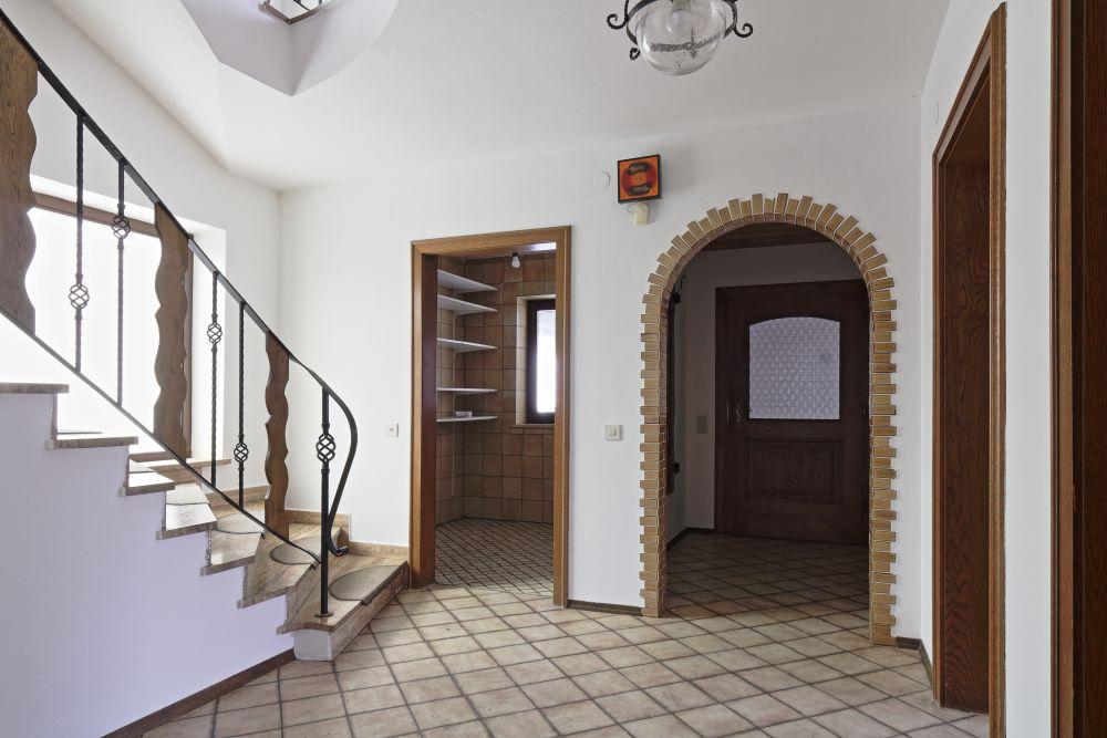 Sie betreten Ihr neues Heim durch einen stattlichen Eingangsbereich. Zu Ihrer Linken befindet sich die große Doppelgarage. Nach rechts gelangen Sie in die Wohnräume. Im Erdgeschoss empfängt Sie eine geräumige Diele. Von dort gehen die gemütliche Küche mit Kaminofen, das Esszimmer, das große Wohnzimmer, ein Gäste-WC, eine Abstellkammer und eine Speisekammer ab. Im Obergeschoss befinden sich drei Schlafzimmer, eine kleine Kammer mit Fenster, das Badezimmer und ein separates WC. Ein wahres Highlight ist das Dachgeschoss. Dieses wurde im Nachhinein ausgebaut: es erwartet Sie ein großer Raum mit Atmosphäre.