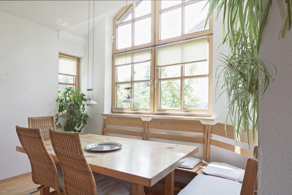 Tageslicht strömt durch die zahlreichen Fenster herein und schafft eine warme und einladende Atmosphäre. Die Räume sind lichtdurchflutet und vermitteln ein Gefühl von Offenheit und Großzügigkeit. Die große Küche ist das Herzstück des Hauses und bietet Ihnen viel Platz, Ihre kulinarischen Fähigkeiten zu entfalten. In der hellen und einladenden Essecke werden Ihre Mahlzeiten zu geselligen Ereignissen.