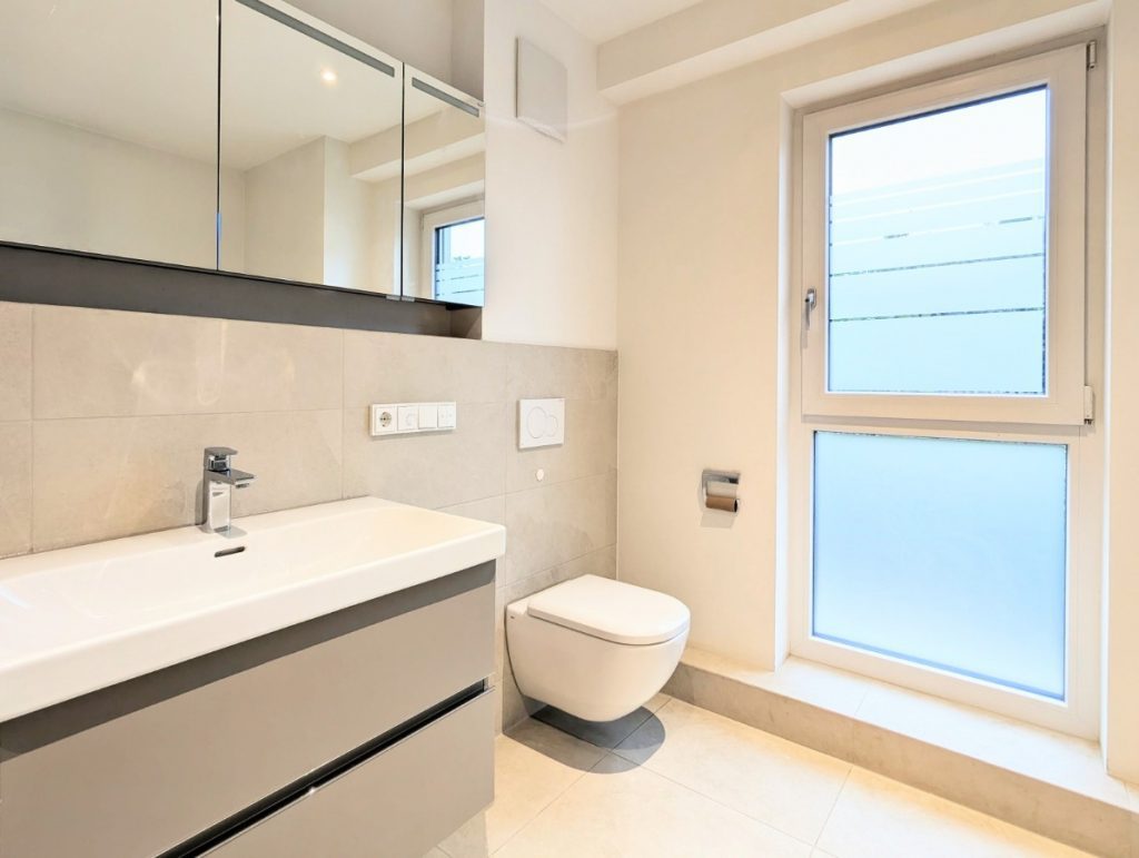 Die im Jahr 2019 errichtete, energieeffiziente Wohnanlage beherbergt nur fünf Einheiten und ist damit ein Synonym für Ruhe, Nachbarschaftlichkeit und Qualität. Die hier angebotene Wohnung im Erdgeschoss erstreckt sich über ca. 112 m² Wohnfläche und besticht durch einen lichtdurchfluteten, barrierefreien Grundriss mit großzügigem Wohn-/Essbereich, zwei separaten Schlafzimmern, zwei Bädern sowie einem herrlichen, uneinsehbaren Gartenanteil mit Sondernutzungsrecht auf ca. 140 m² & überdachter Terrasse – ideal für entspannte Stunden im Grünen, urbanes Gärtnern oder stilvolle Begegnungen mit Familie & Gästen. „Barrierefrei nutzbar“ gemäß der DIN 18040 Teil 2.